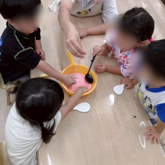 これからも、身近な素材を使った感触あそびを取り入れながら、「おもしろい!」「もっとやりたい!」という気持ちを育んでいきたいと思います。