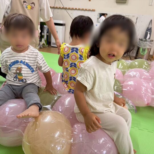 風船を使ったリズムあそびや、新聞紙を使ったごっこ遊び、サーキットあそびなど、頭と体の両方をたっぷり使って活動しています。