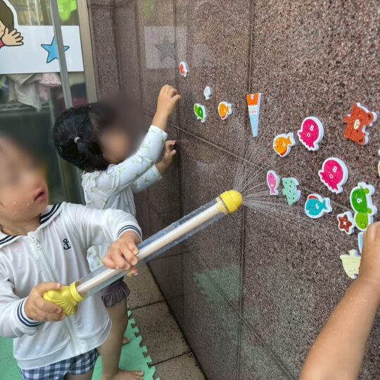 これからの暑い夏も、室内あそびと水あそびをうまく組み合わせながら、子どもたちが元気いっぱい、笑顔で過ごせるようにしていきたいと思います。