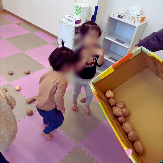 1歳児さん、2歳児さんそれぞれの年齢や発達に応じた内容に工夫し、みんなが無理なく楽しく参加できるようにしました。