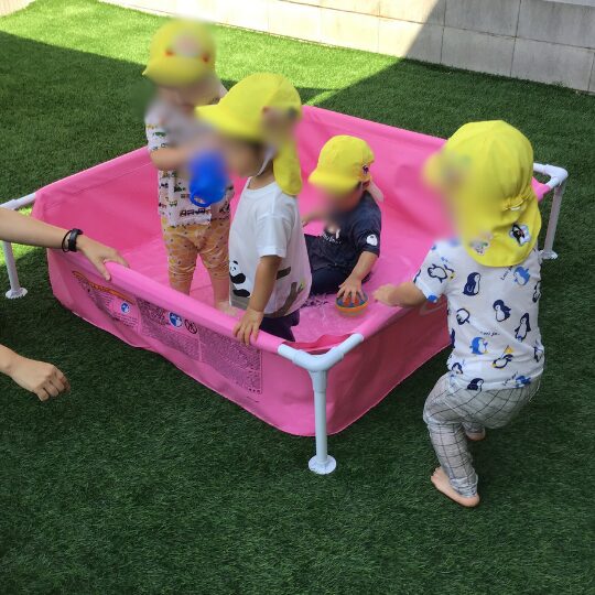 水あそびを通して、暑さを乗り切るだけでなく、感覚や運動能力の発達にもつながる大切な体験となりました。