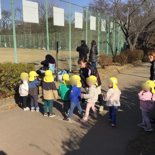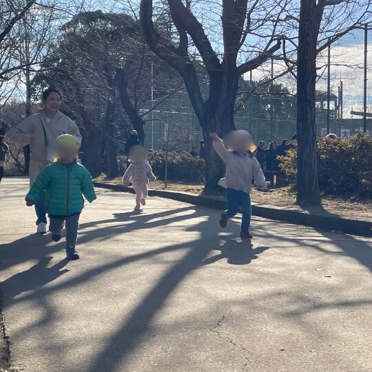 子どもたちは寒さにも負けず、元気に公園を走り回ったり、滑り台や坂道を登ったりと、遊びながら自然と丈夫な体づくりにも取り組んでいます。