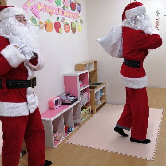 今年は、なんと2名のパパにご協力いただき、サンタクロース役を引き受けてくださいました。お子さまたちにはもちろん、保護者・職員にとっても心あたたまる場面となりました。
