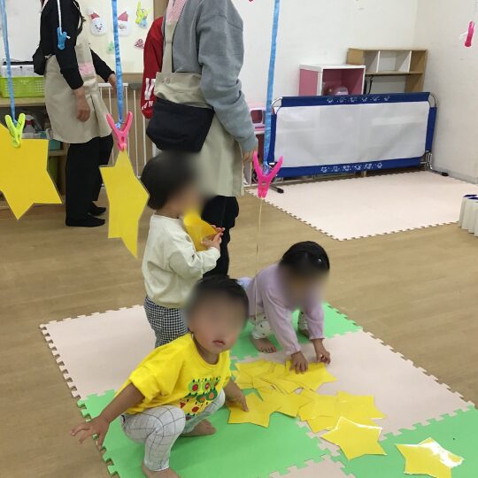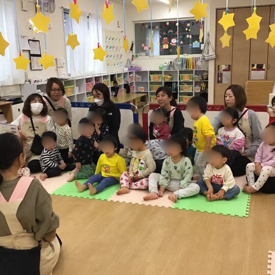 11月、にじのこの2歳児クラスは、卒園を視野に入れた保育活動の一環として、姉妹園である「あっとほーむママ・ほしのこ」の2歳児クラスと合同保育を実施しました。
